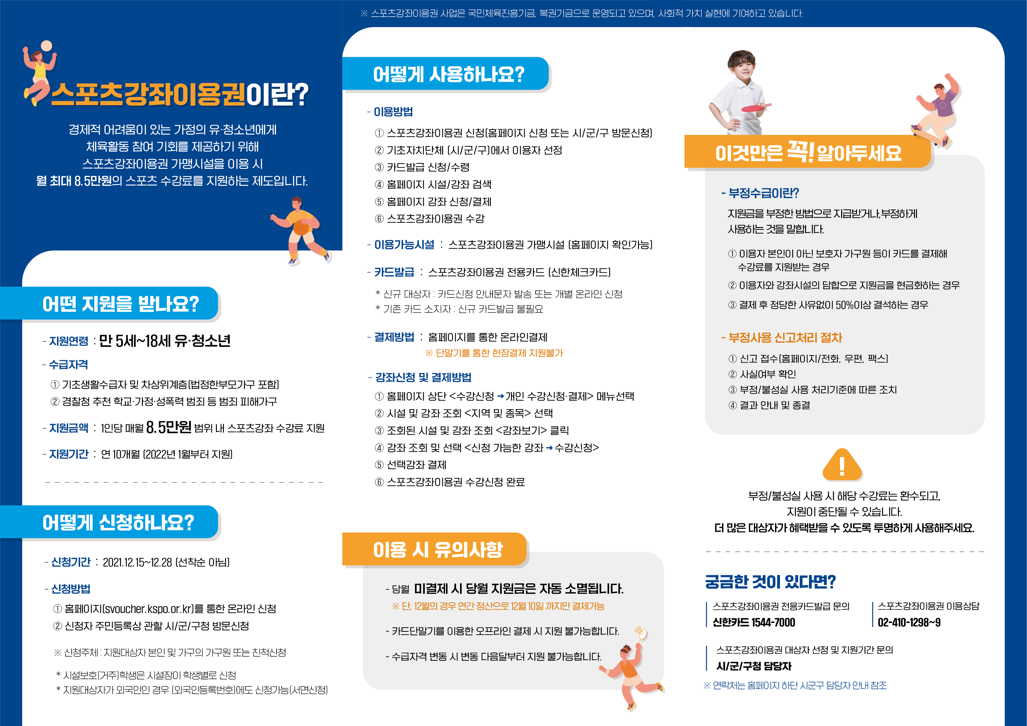 #스포츠바우처 #스포츠강좌이용권 #2025스포츠바우처 #저소득층지원 #체육활동지원 #청소년체육 #아동체육 #스포츠지원 #복지혜택 #생활체육 #스포츠복지 #건강한성장 #체육활동 #스포츠교육 #복지제도