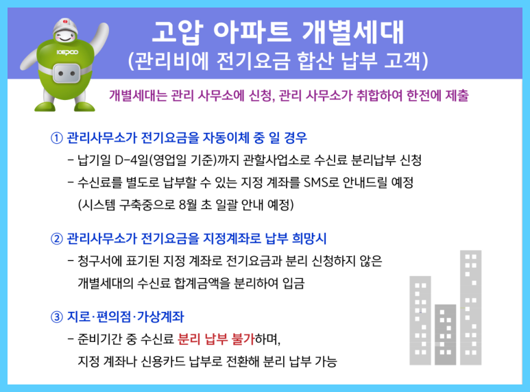 아파트 거주자의 경우, 관리비에 포함된 TV수신료를 분리하여 납부하고 싶다면: